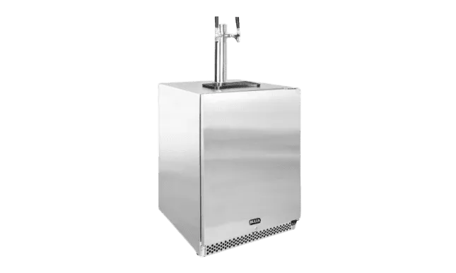 This stainless steel dual tap tower made by Bull is specifically constructed for the Bull kegerator. allowing you to pour two types of beverages at the same time.
